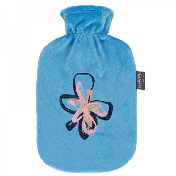 Bouillotte à eau Velours Bleu Fleur, 2 litres