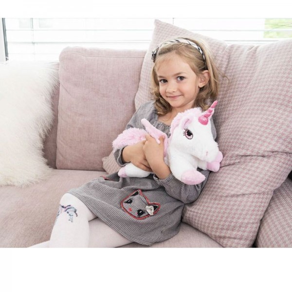 Cette peluche chauffante est peluche douce et moelleuse. Le coussin bouillotte est rempli de grains de millet et d'un mélange de parfum aromatique (huiles essentielles). Il peut être retiré de la peluche. La housse est lavable en machine à 30 degrés. Type licorne.