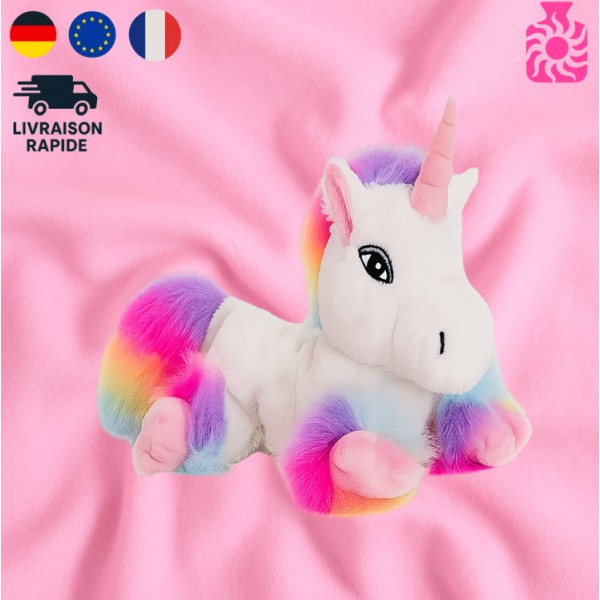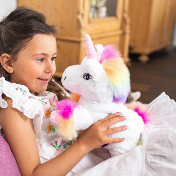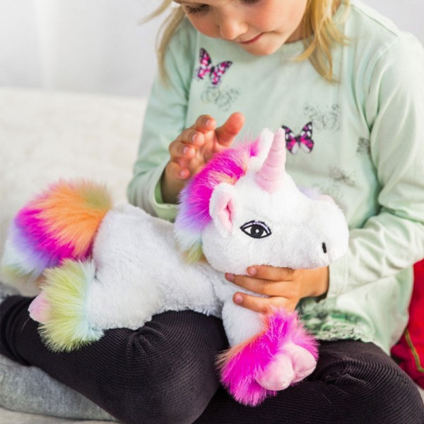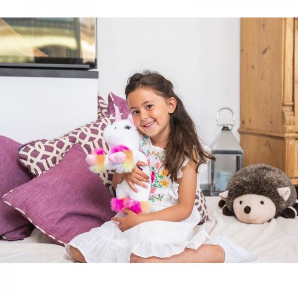 Peluche bouillotte déhoussable Licorne blanche arc en ciel au micro-ondes