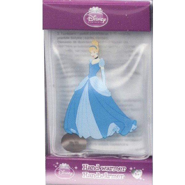 Chaufferette gel Cendrillon des Princesses Disney, 9.5x7cm, réutilisable. S'active via la pression d'un bouton qui active la chaleur de manière immédiate. Jusqu'à 30 minutes maximum de chaleur.