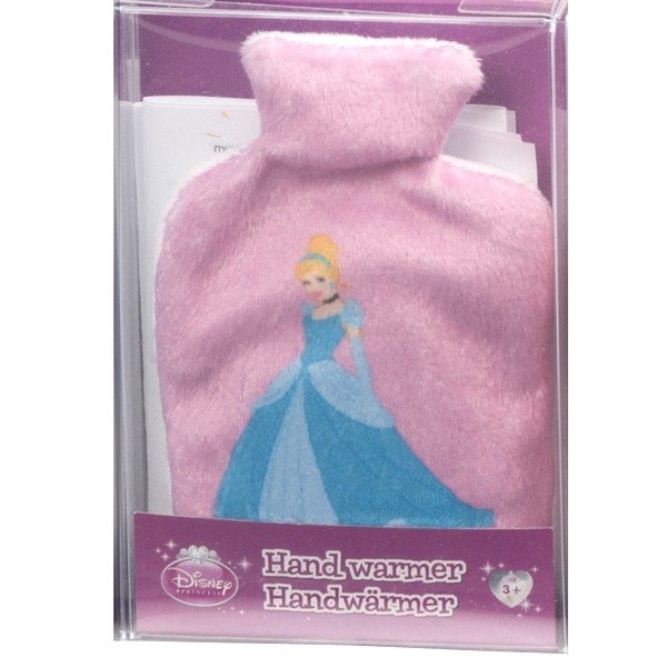 Chaufferette mains en forme de bouillotte avec housse motif Princesse Disney Cendrillon. 11.5x7cm (housse), réutilisable. S'active via la pression d'un bouton qui active la chaleur de manière immédiate. Jusqu'à 30 minutes maximum de chaleur.