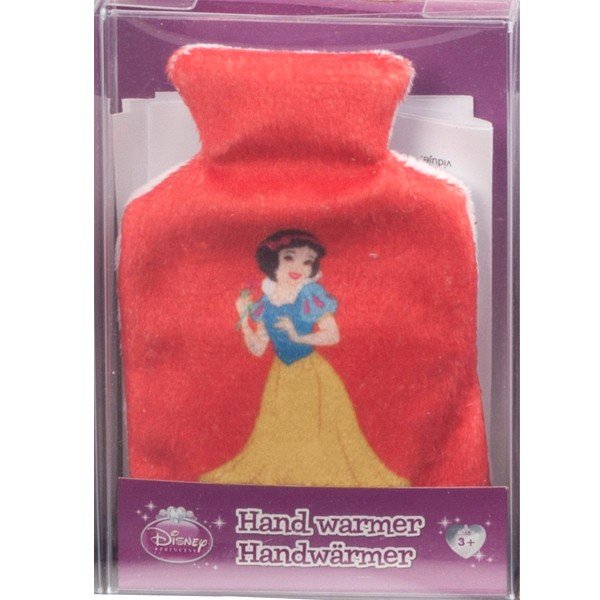 Chaufferette mains en forme de bouillotte avec housse motif Princesse Disney Blanche Neige. 11.5x7cm (housse), réutilisable. S'active via la pression d'un bouton qui active la chaleur de manière immédiate. Jusqu'à 30 minutes maximum de chaleur.
